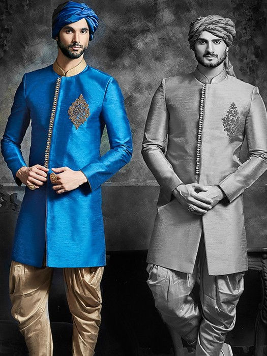 PLAIN BLUE WEDDING WEAR SILK INDO WESTERN