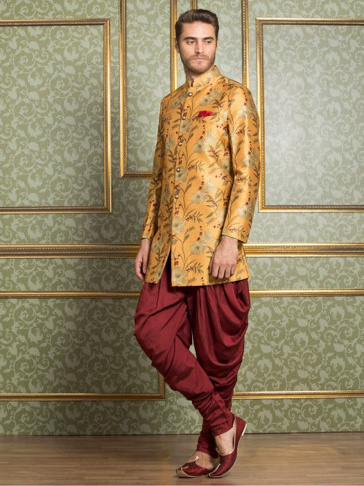 LAMON YELLOW SILK PARTY INDO WESTERN